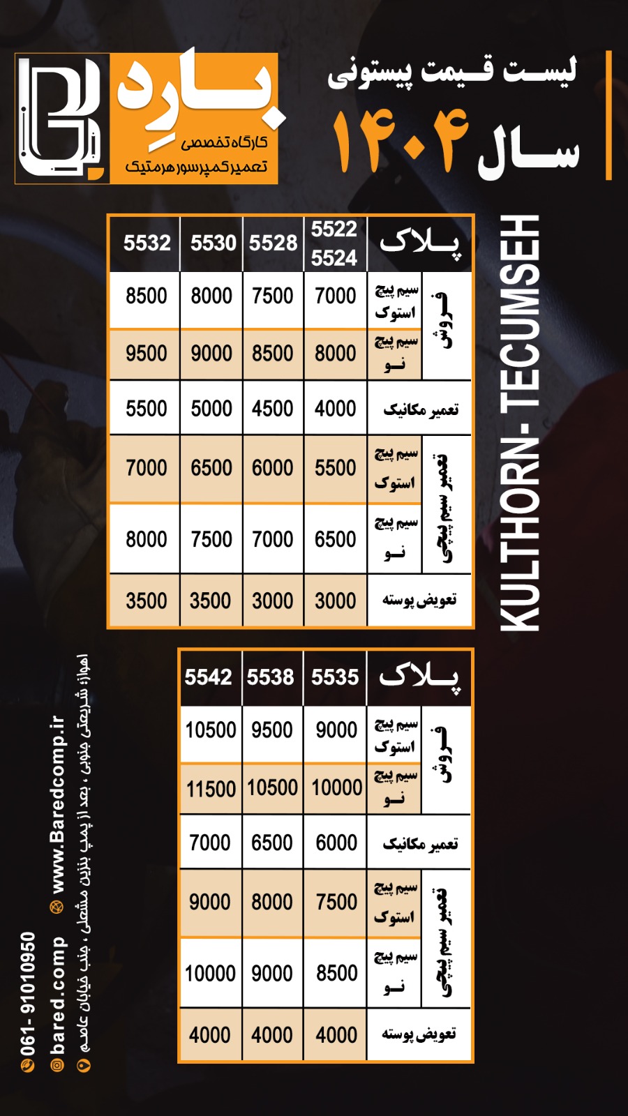 لیست قیمت کومپرسور هرمتیک